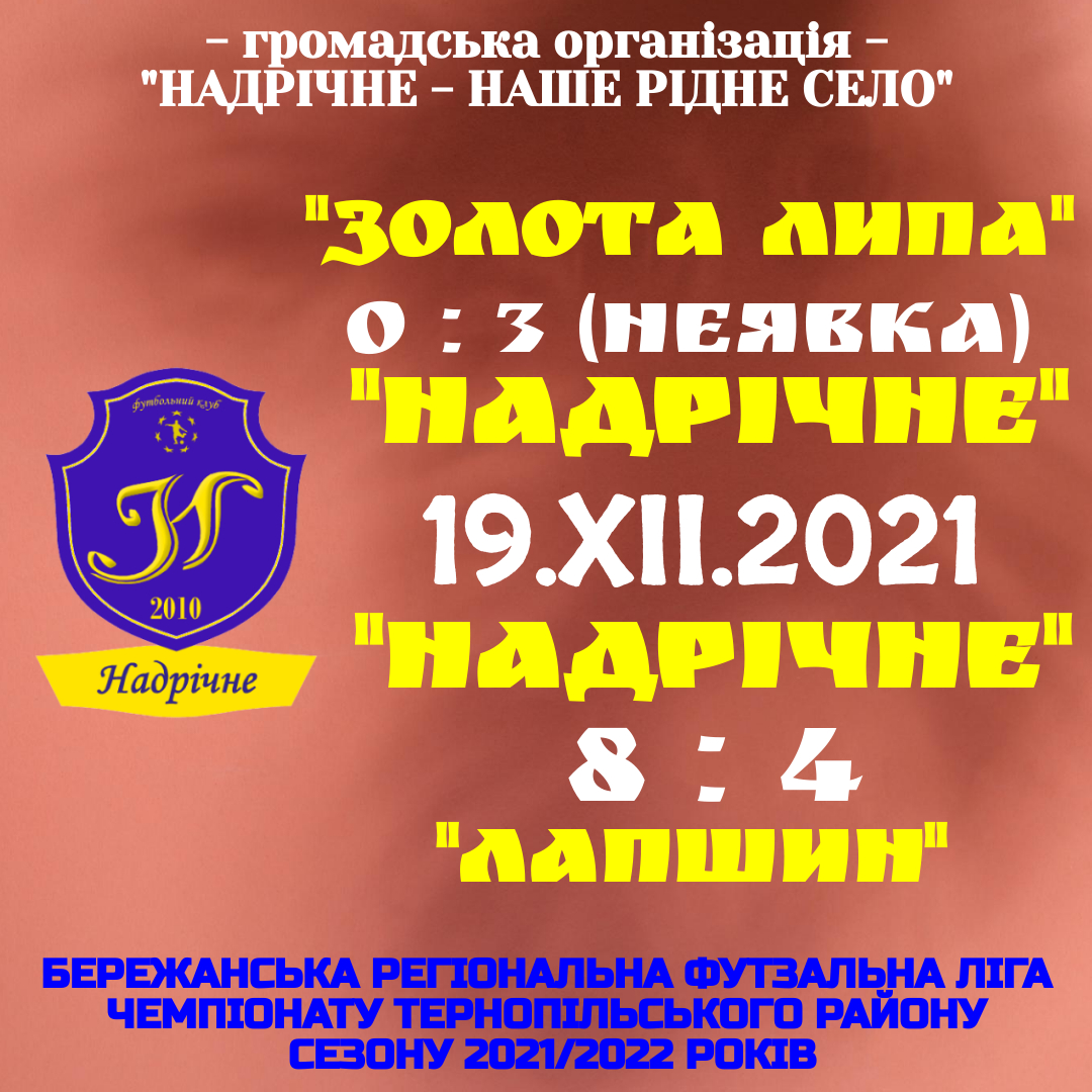 ФК “НАДРІЧНЕ” – ФК ЛАПШИН” 8:4 (ПЕРШИЙ ТАЙМ 5:1)