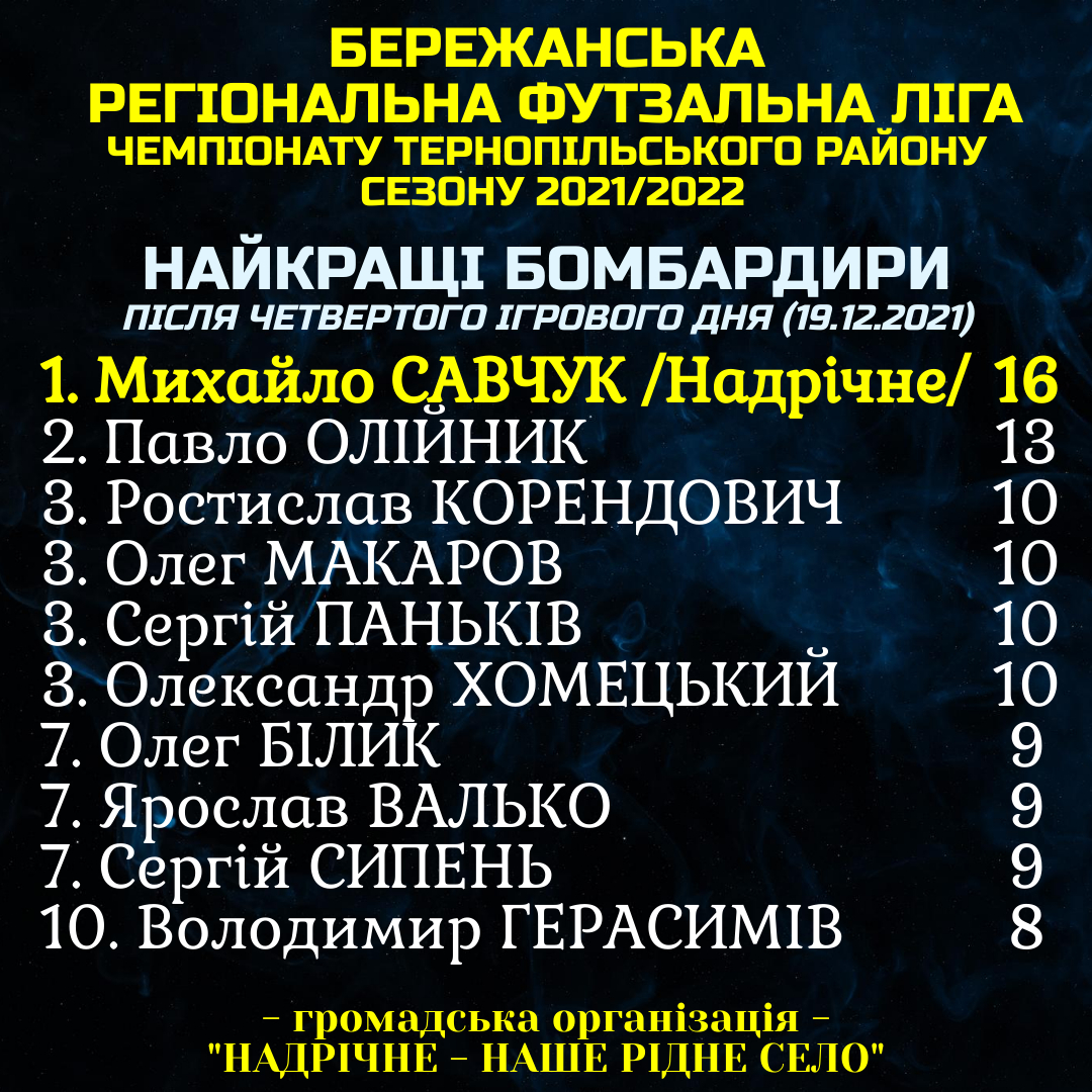 ФУТЗАЛ: день 4 (19 грудня 2021) – РЕЗУЛЬТАТИ