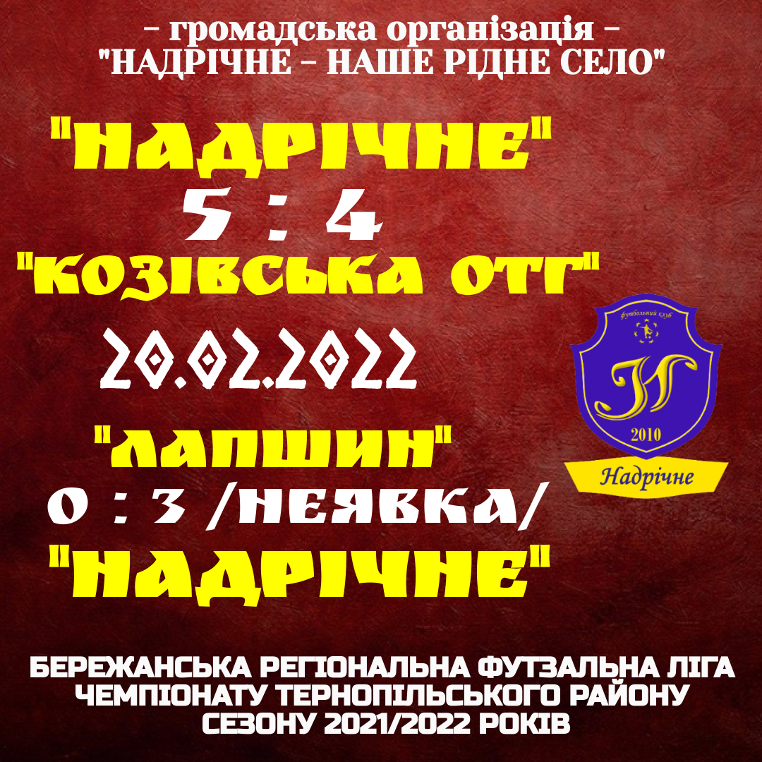 Ексклюзив Футбол Футзал Кінець! Багато неявок… nadrichne 21/02/2022 Бережанська регіональна футзальна ліга Чемпіонату Тернопільського району сезону 2021/2022 років. Дев’ятий ігровий день. 20 лютого Post navigation Попередня Виграти бомбардирські перегони і втримати четверте місце! /Анонс заключного ігрового дня/Наступна Надрічнянська гімназія: «English Time» Схожі публікації Війна Ексклюзив Листівка Чотири роки… 24/02/2026 nadrichne Ексклюзив Фото Церква Копія Острозької Біблії 08/02/2026 nadrichne Діаспора Ексклюзив Фото Олег Галушка. Церква. Казахстан (2024-2025) 03/02/2026 nadrichne