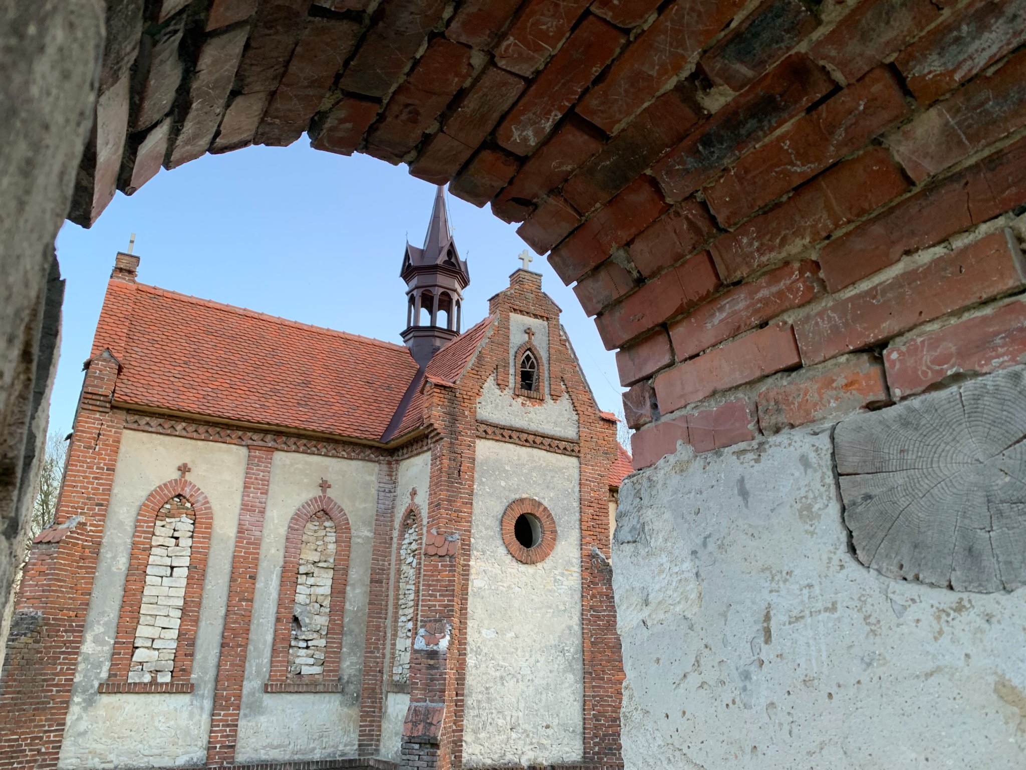 Архітектурий стиль костелу дуже схожий на костел в Полянах (село не подалік у Золочівському районі, Львівської області). Отже, знову ж таки, можна припустити, що і цей костел збудував відомий львівський архітектор Юліан Захаревич, ну вже дуже чітко проступає його архітектурний модерново-класичний стиль. Костел закинутий. В середині, куди можна потрапити через пролом у вівтарній частині, пустка і вологість.