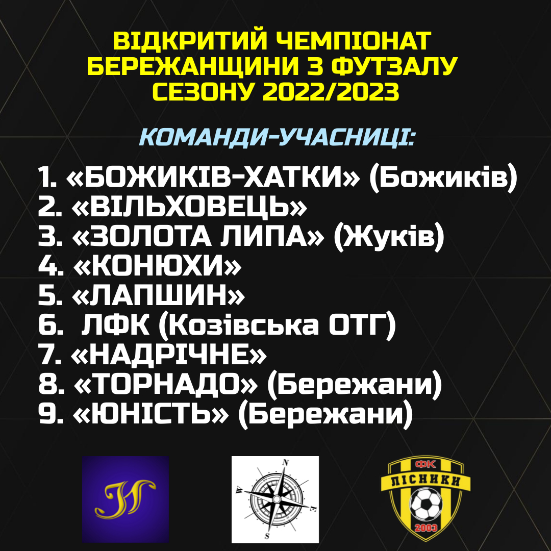 9 команд виявили бажання взяти участь у відкритому чемпіонаті Бережанщини з футзалу сезону 2022-2023 років.