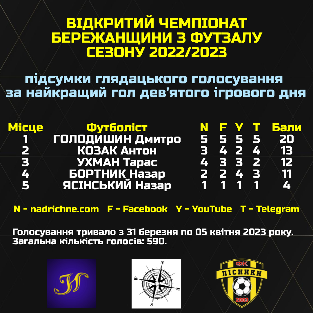 Симпатики Дмитра ГОЛОДИШИНА зробили все можливе для перемоги футзаліста “Юності” в глядацькому голосуванні. Нечувана досі аудиторія (590 активних респондентів), максимальна підтримка (20 балів) та рекордна перевага над іншими конкурсантами (“+7”).