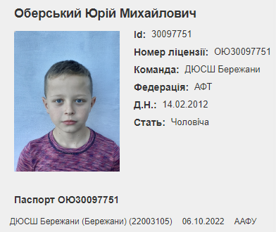 Юрій Оберський захищав ворота команди у регіональних змагання ДЮФЛ Тернопільщини сезону 2022/2023 років у віковій групі U-11.
