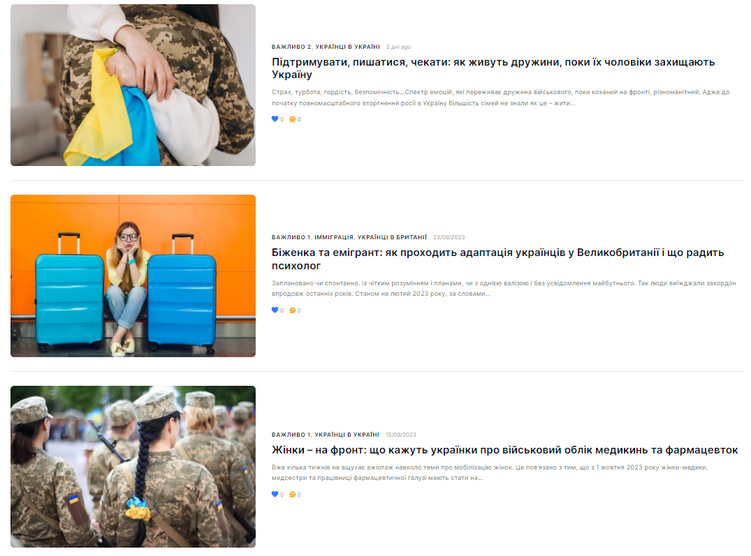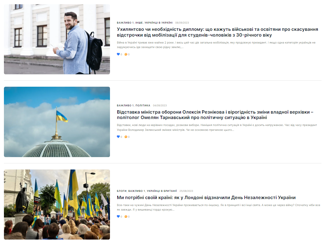 Коли я приїхала в Лондон, то завдяки цьому сайту могла бути в курсі основних подій, які тут проходять для українців. Цей інформаційний ресурс створений, аби допомагати нашим співвітчизникам тут, у Великобританії. Адже окрім новинного блоку, тут також є оголошення щодо роботи, анонси заходів з її пошуку чи творчих вечорів, які популяризують українську культуру.