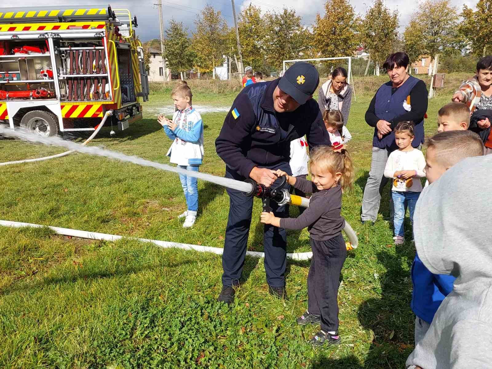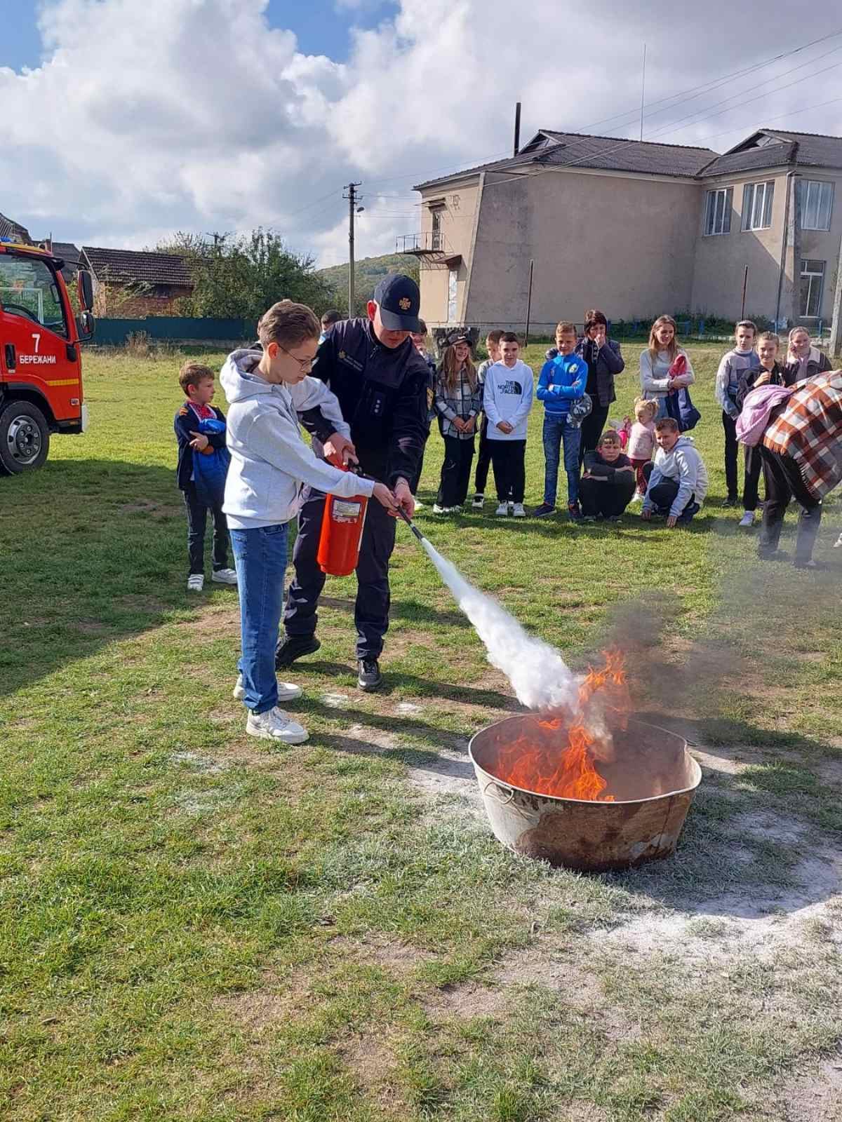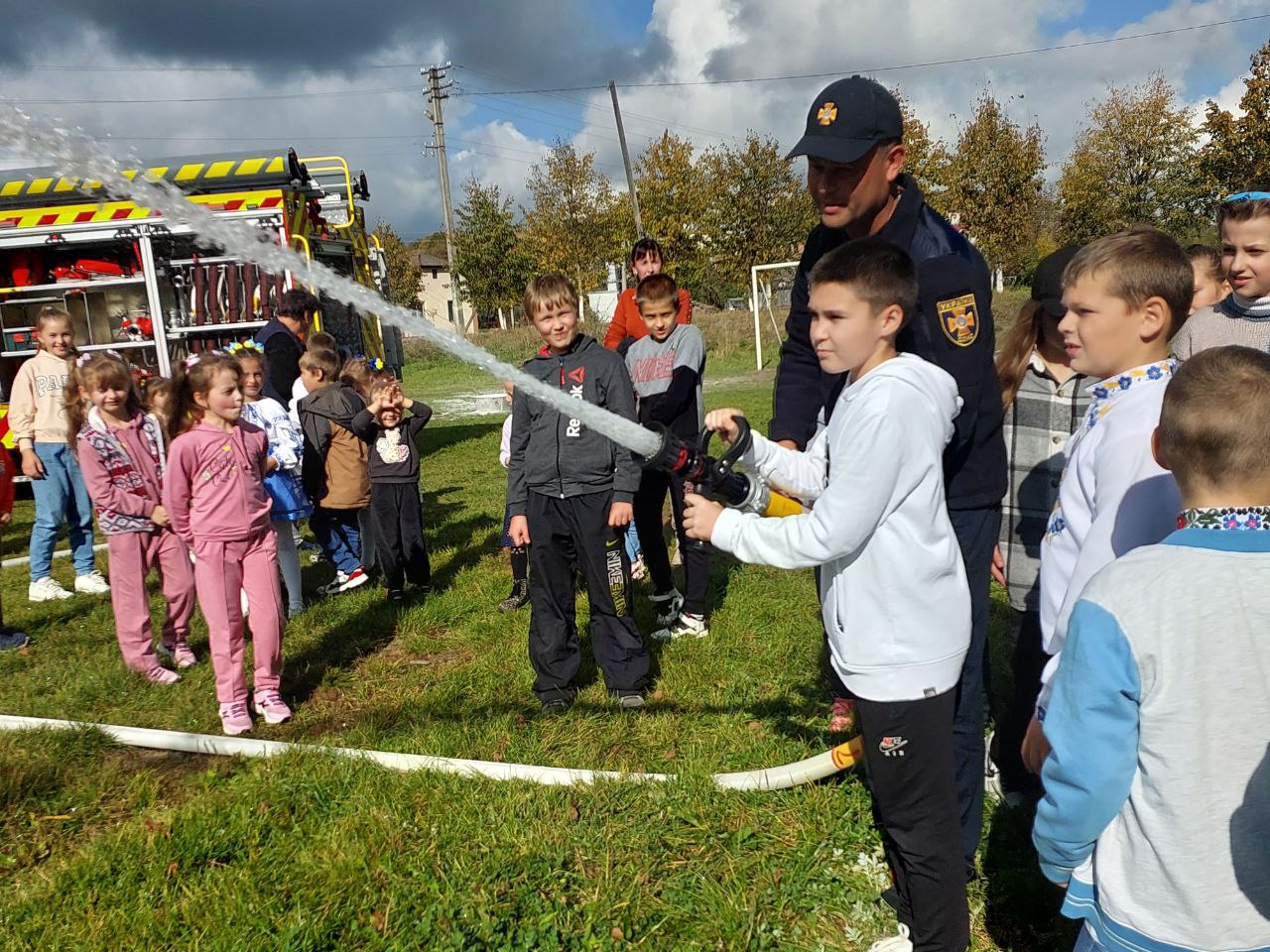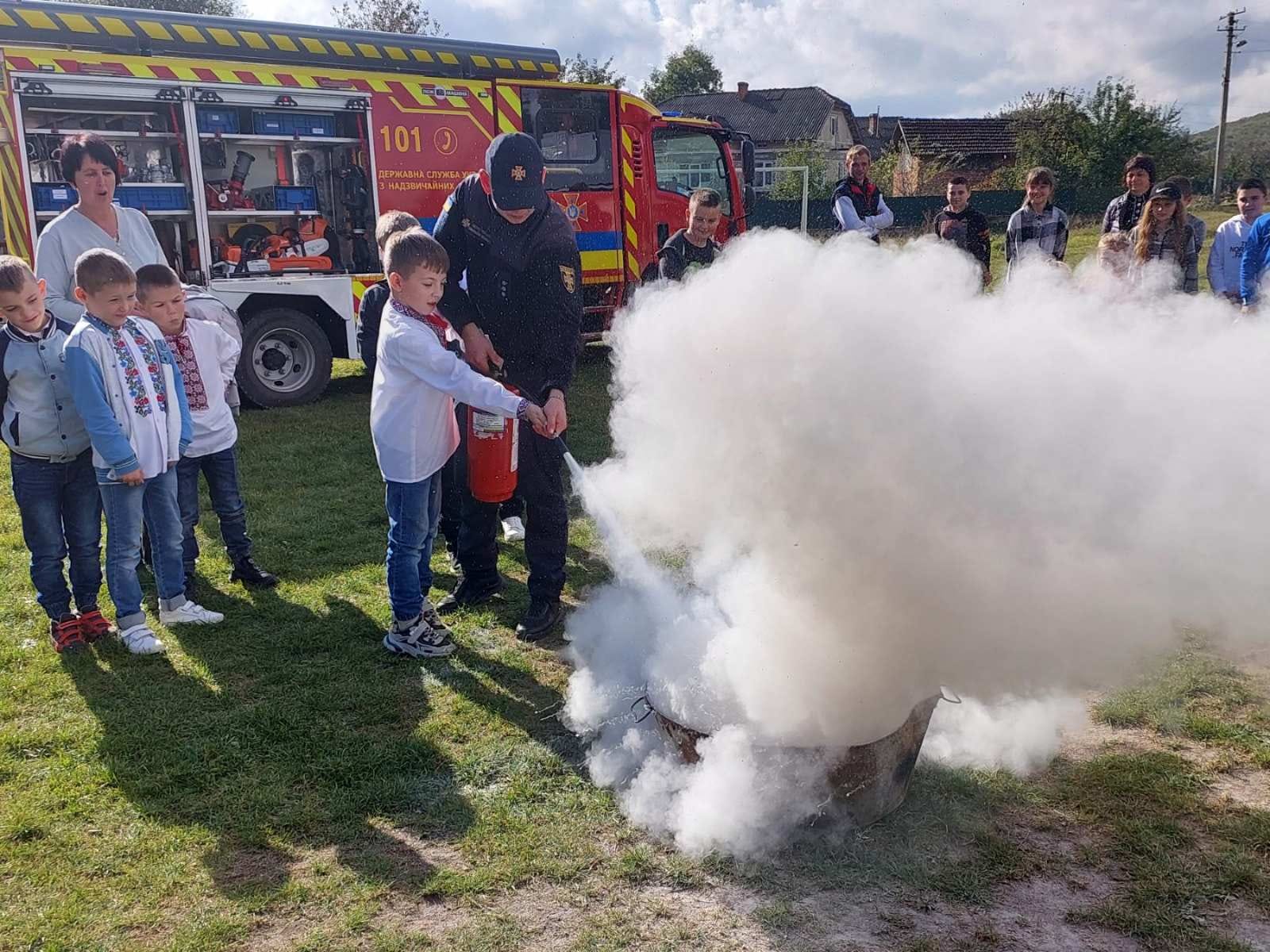 З дітьми проведено : « Урок безпеки» , та пожежно-тактичні навчання. Учням було цікаво більше довідатися про правила безпеки в побуті, як уберегтися від небезпек. Як діяти, якщо пожежа виникла вдома, в школі чи просто помітили вогонь на вулиці. Діти вийшли на подвір’я і з цікавістю слухали розповідь вогнеборців про їхню роботу та улаштування автомобіля, мали змогу посидіти в авто та роздивитися ,що в ньому в середині. Учні ознайомилися з різними видами вогнегасників та отримали змогу відчути себе юними пожежниками, загасивши невелику пожежу.