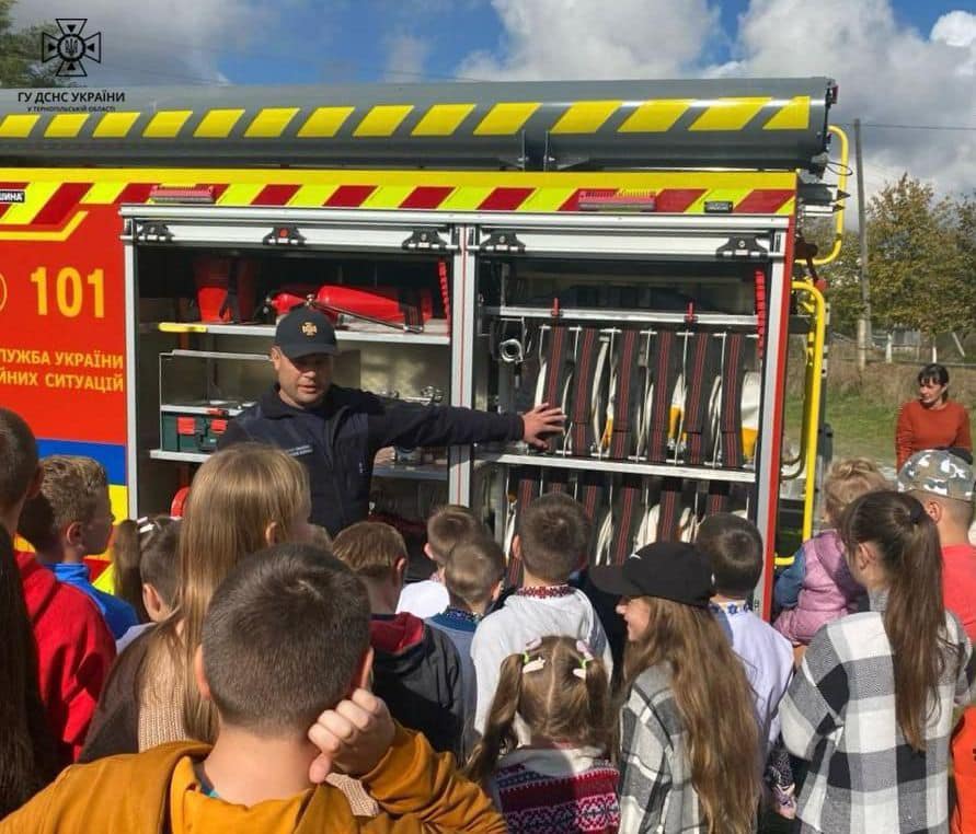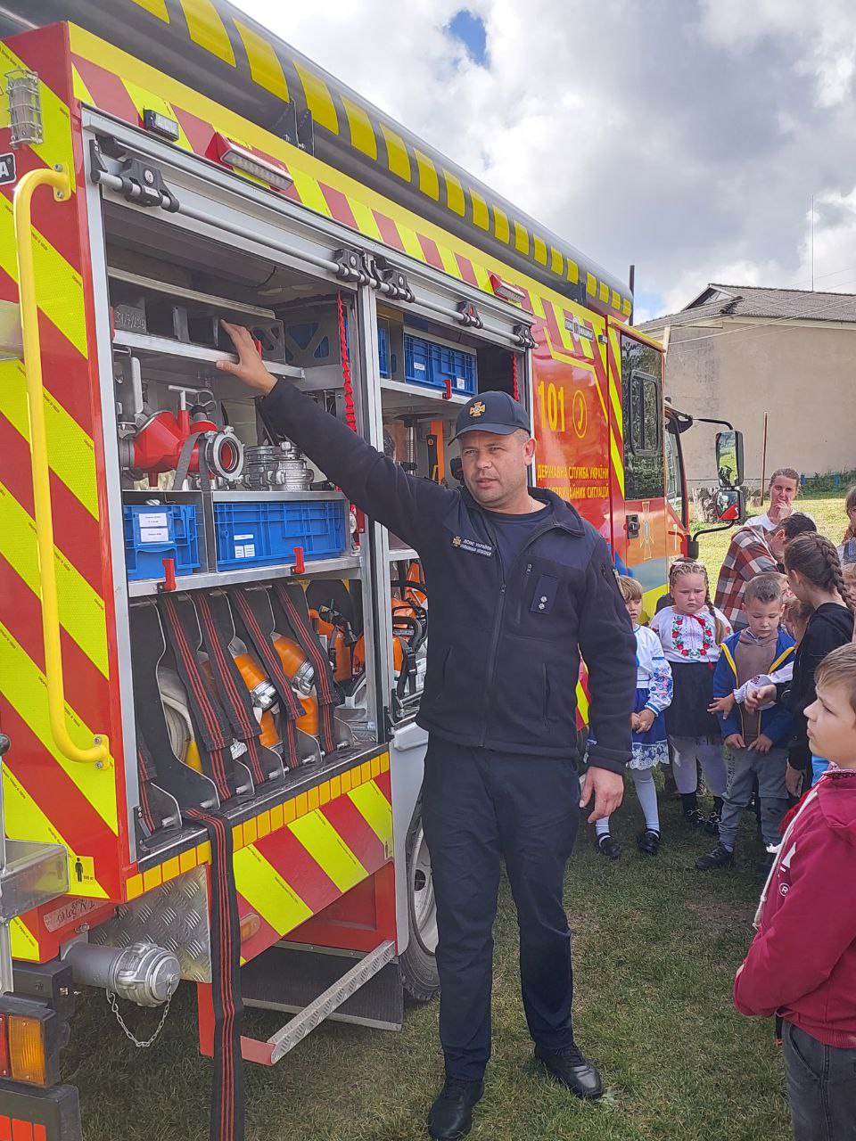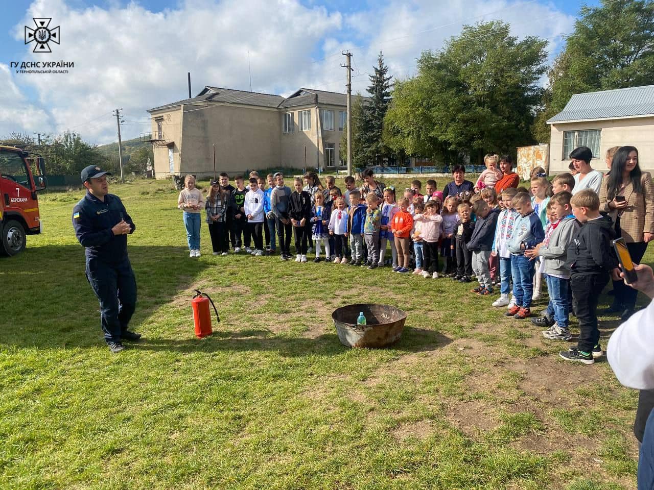 З дітьми проведено : « Урок безпеки» , та пожежно-тактичні навчання. Учням було цікаво більше довідатися про правила безпеки в побуті, як уберегтися від небезпек. Як діяти, якщо пожежа виникла вдома, в школі чи просто помітили вогонь на вулиці. Діти вийшли на подвір’я і з цікавістю слухали розповідь вогнеборців про їхню роботу та улаштування автомобіля, мали змогу посидіти в авто та роздивитися ,що в ньому в середині. Учні ознайомилися з різними видами вогнегасників та отримали змогу відчути себе юними пожежниками, загасивши невелику пожежу.