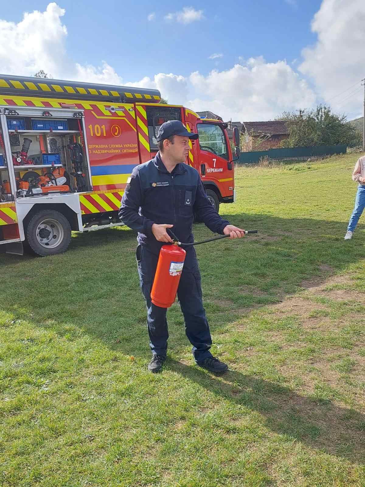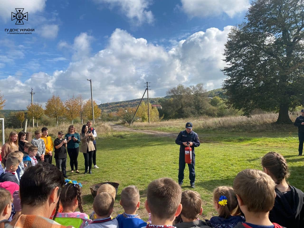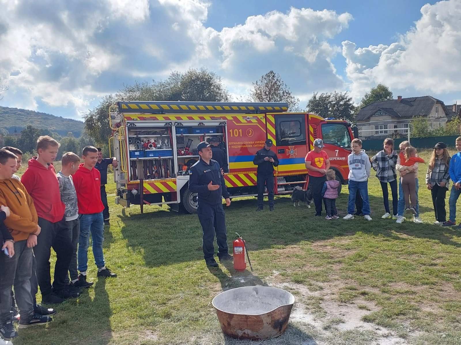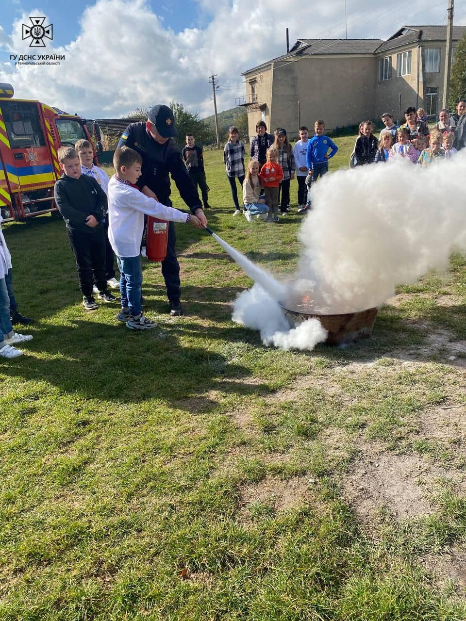 З дітьми проведено : « Урок безпеки» , та пожежно-тактичні навчання. Учням було цікаво більше довідатися про правила безпеки в побуті, як уберегтися від небезпек. Як діяти, якщо пожежа виникла вдома, в школі чи просто помітили вогонь на вулиці. Діти вийшли на подвір’я і з цікавістю слухали розповідь вогнеборців про їхню роботу та улаштування автомобіля, мали змогу посидіти в авто та роздивитися ,що в ньому в середині. Учні ознайомилися з різними видами вогнегасників та отримали змогу відчути себе юними пожежниками, загасивши невелику пожежу.