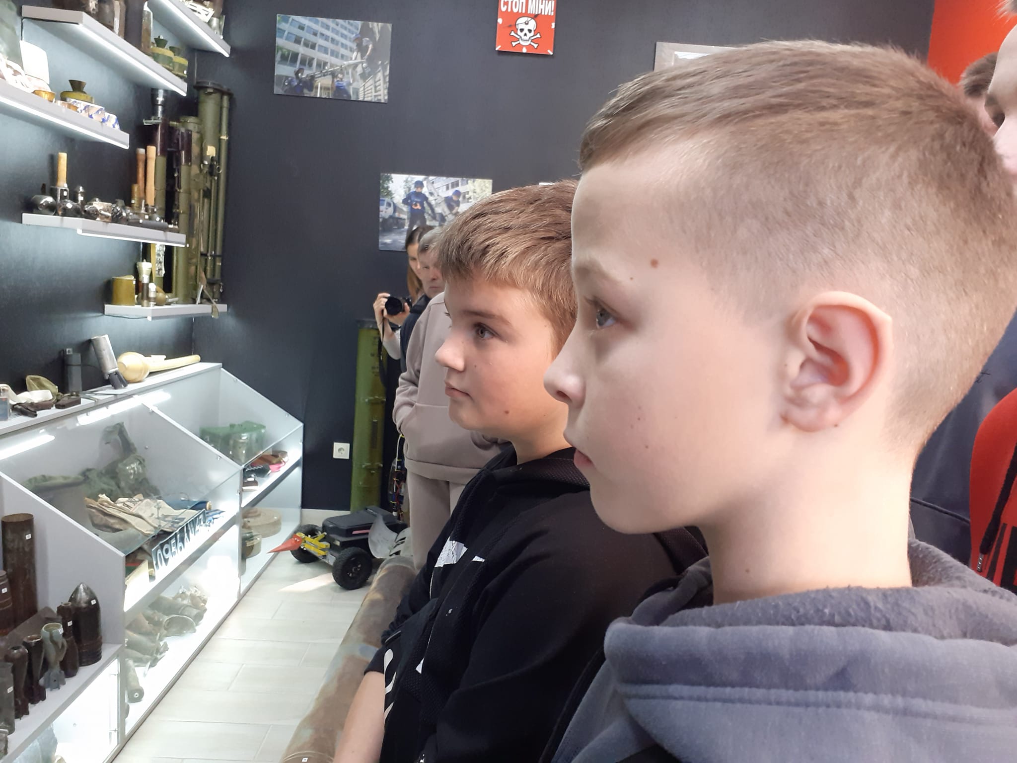 Школярі з особливою цікавістю розглядали експонати у кімнаті мінної безпеки. Дітям наголосили на правилах поводження із небезпечними та підозрілими предметами. Адже у цей час слід бути особливо уважними та обережними.