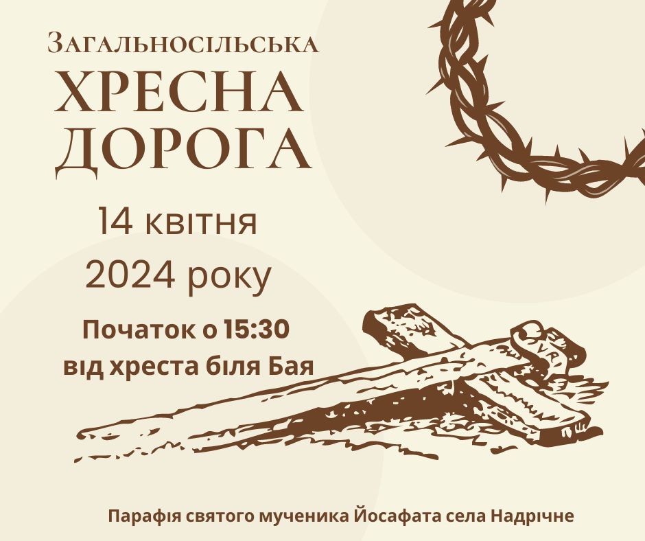 Оголошення Церква Хресна дорога (2024) /оголошення/ nadrichne 12/04/2024 Post navigationПопередня Пізнавальне заняття “STEM-освіта – це безпечно”Наступна Вайб, «лавова лампа» та «молочний вулкан» Схожі публікації Відео Ексклюзив Свято Фото Церква Великдень (2026) 12/04/2026 nadrichne Відео Ексклюзив Фото Церква Плащаниця (2026) 10/04/2026 nadrichne Ексклюзив Листівка Фото Церква Вербна неділя (2026) 05/04/2026 nadrichne