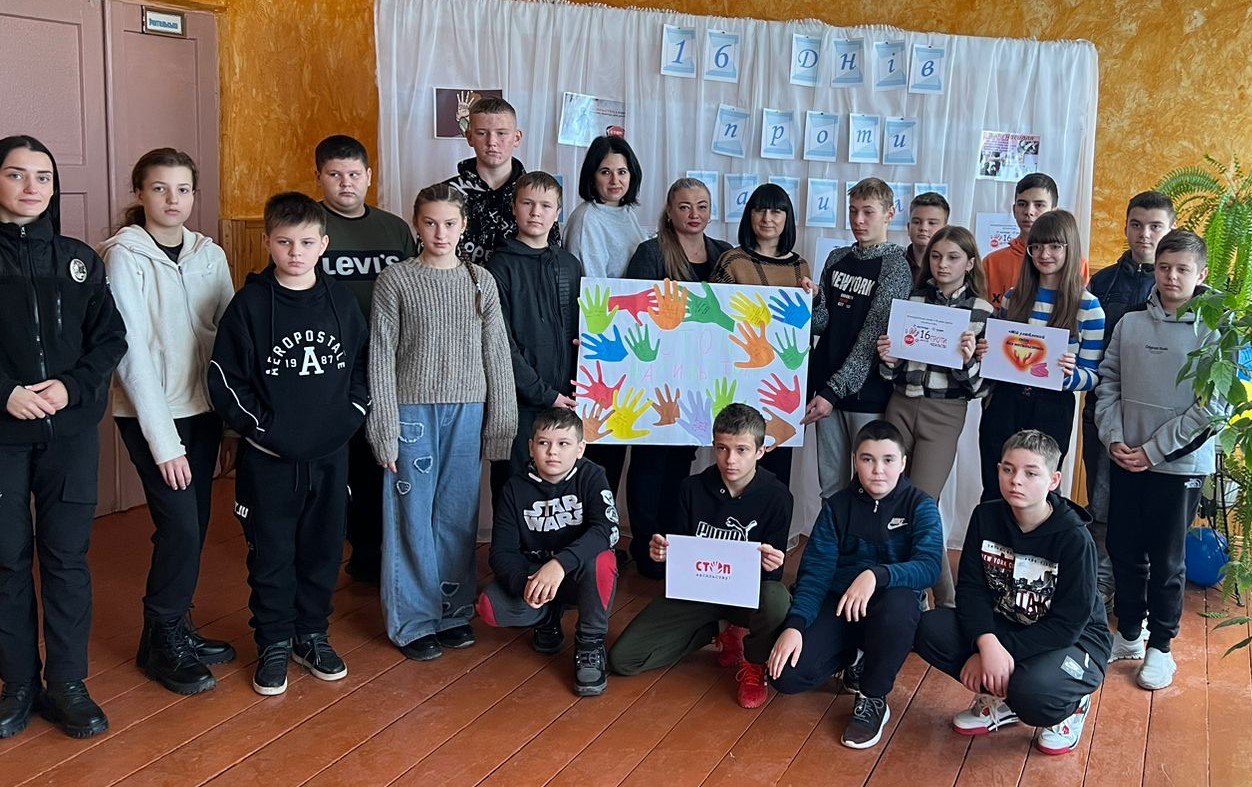 В рамках Всеукраїнської акції «16 днів проти насильства» в Надрічнянській гімназії працівниками служби у справах дітей Оксаною ШКІЛЬНОЮ та Христиною ПРОЦЬ, працівником поліції ВП №1 (м. Бережани) Юлією ЯЛОВОЮ було проведено тренінг для учнів 5-9 класів.