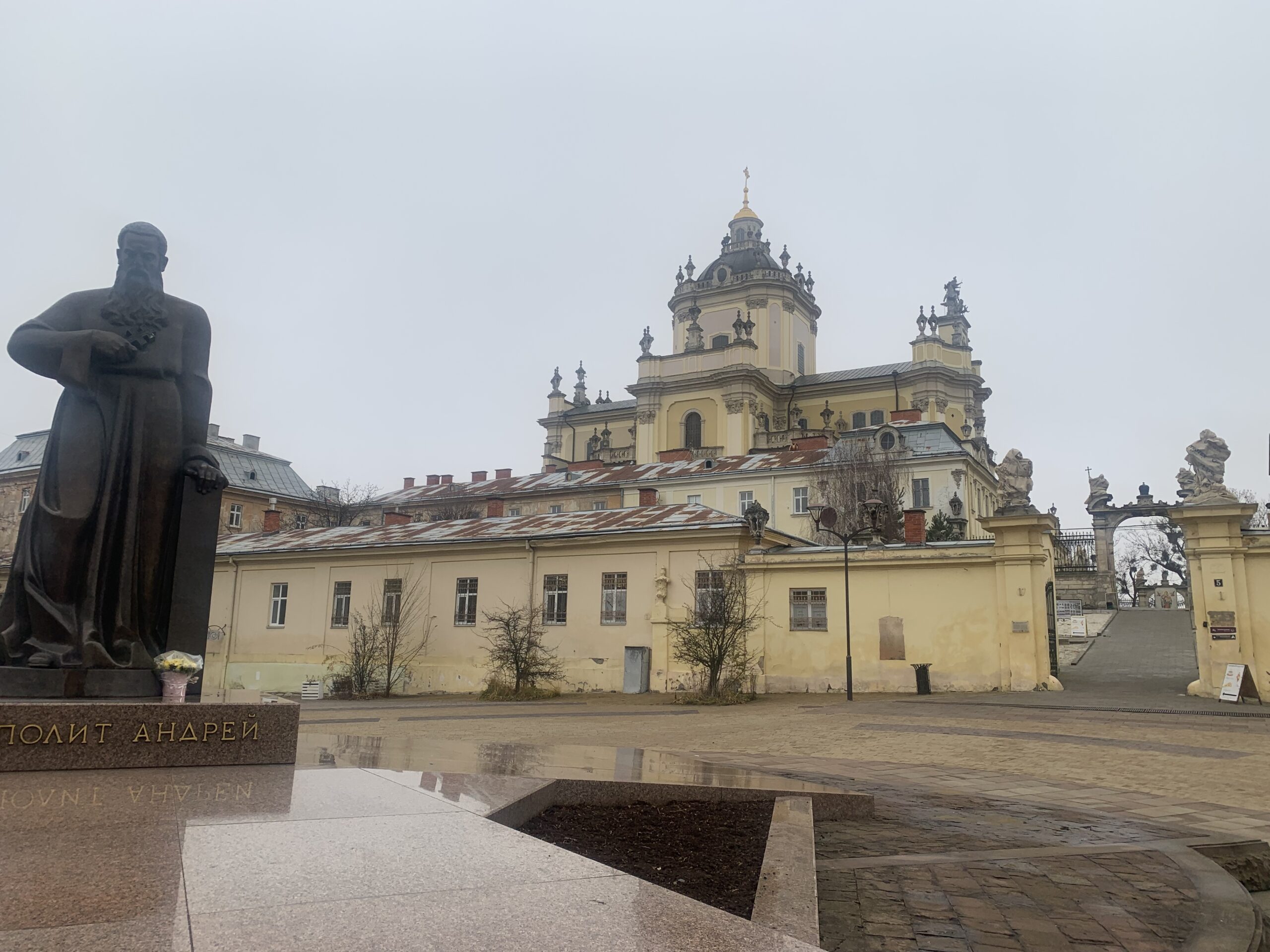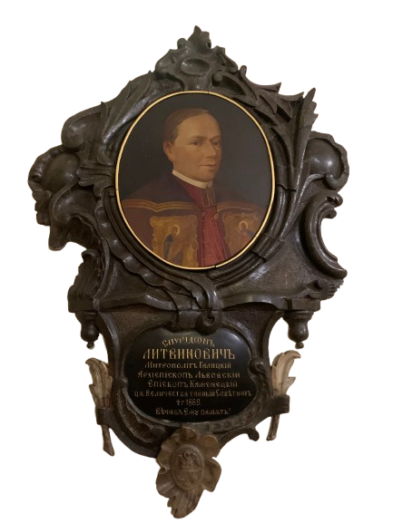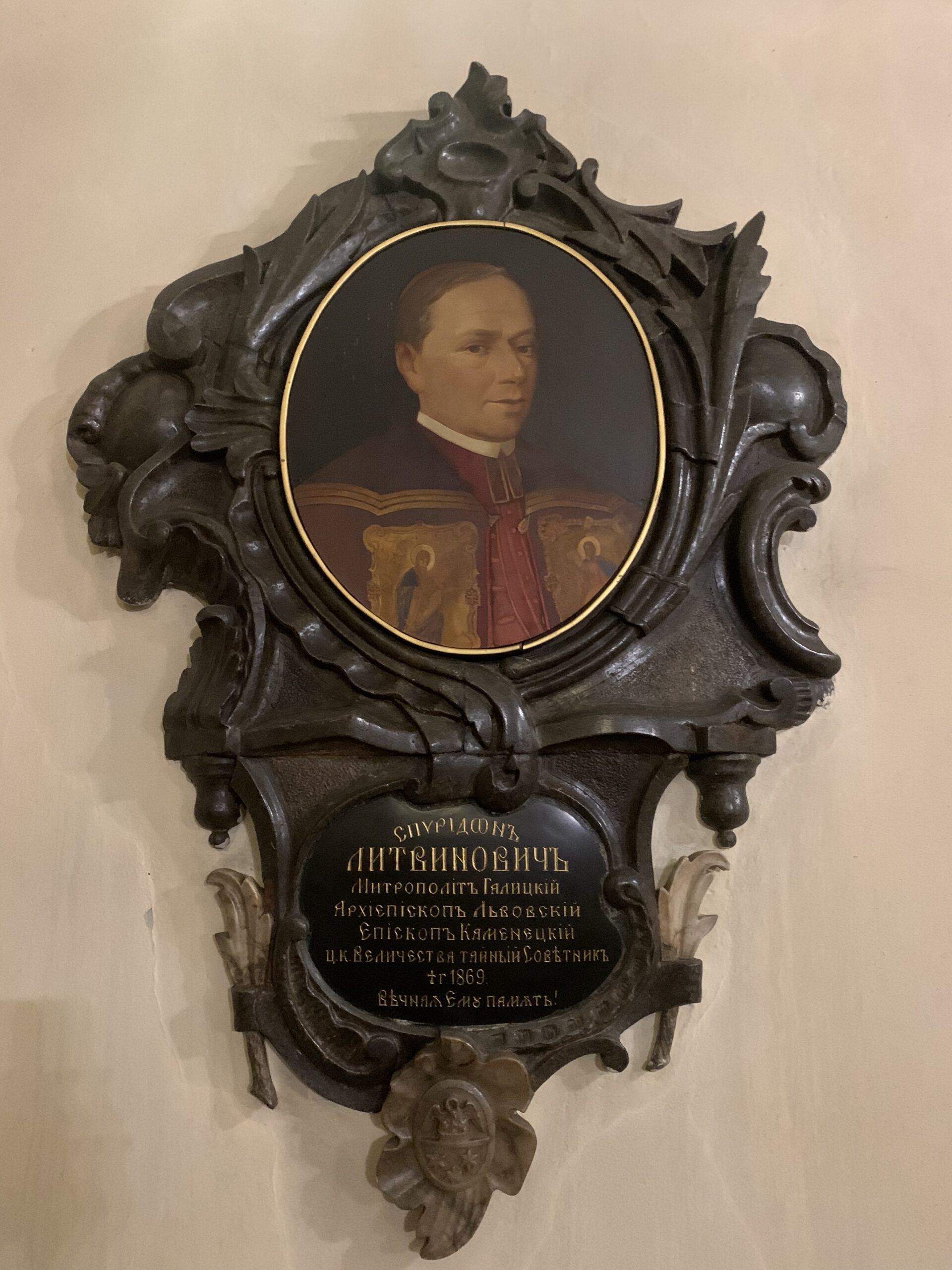 Портрет Митрополита Спиридона Литвиновича на стіні Собору Святого Юра у Львові.