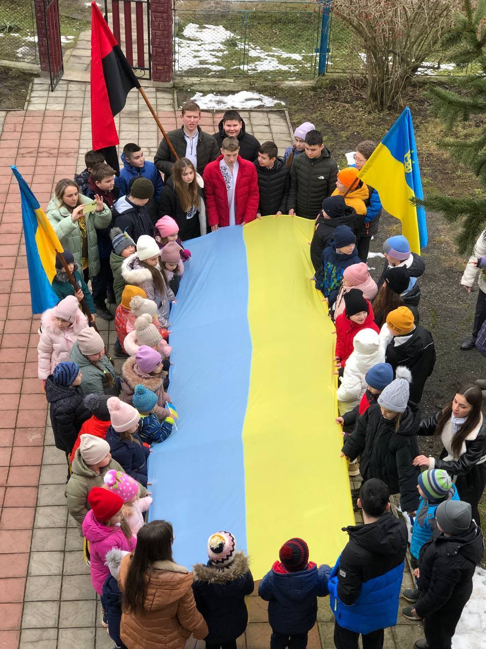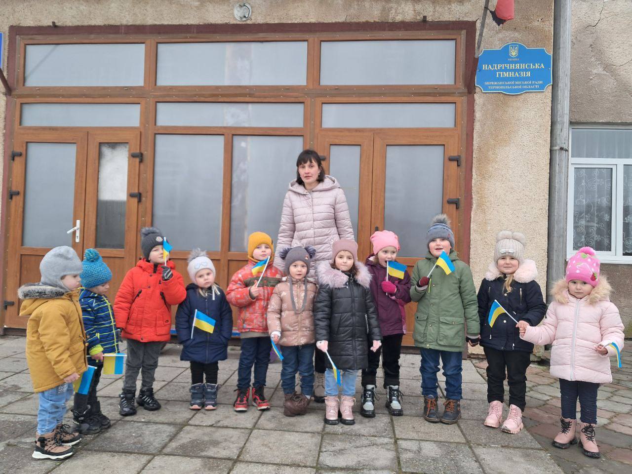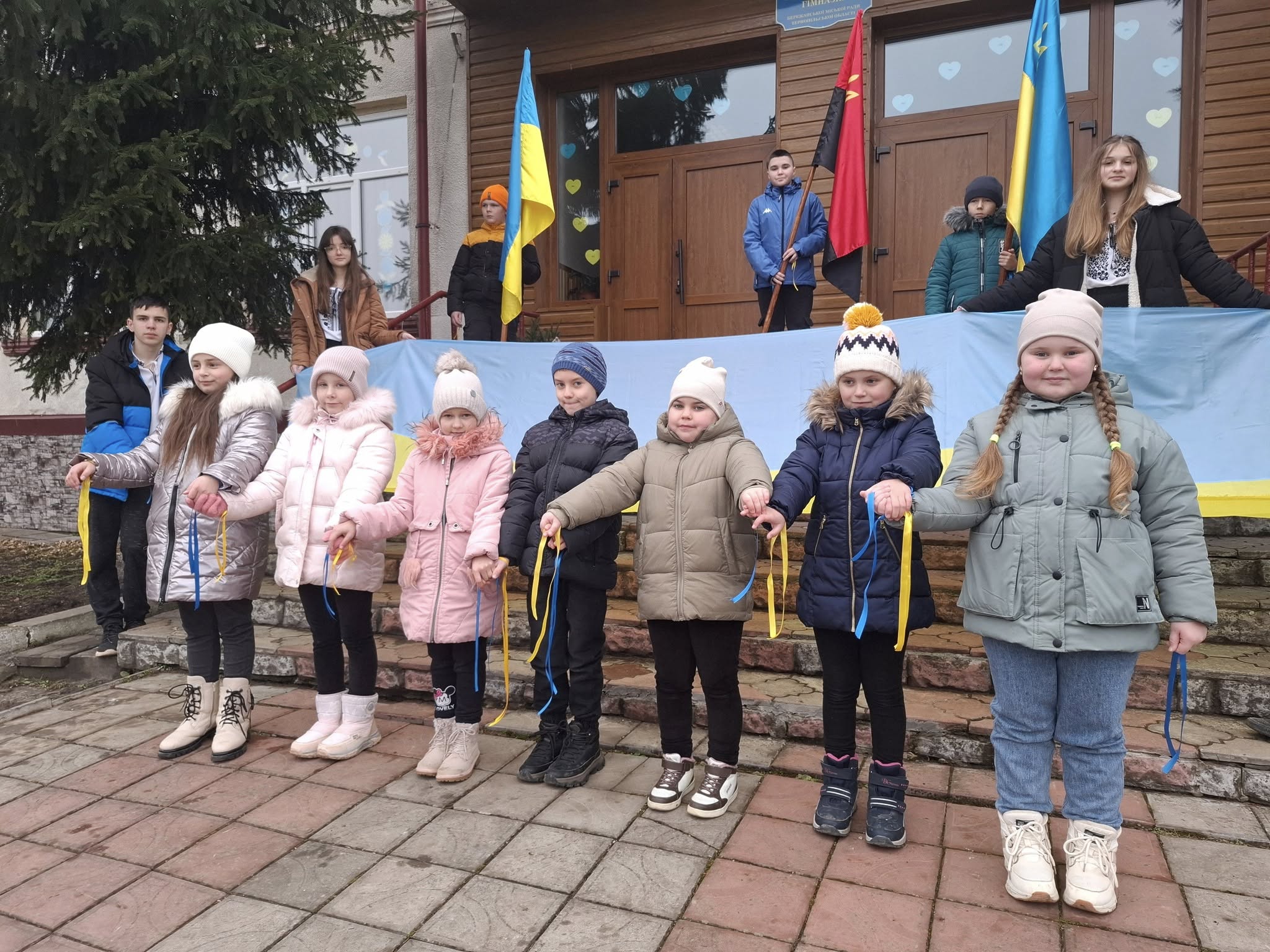 💙Сьогодні всі учні Надрічнянської гімназії та вихованці Дошкільного підрозділу створили символічний ланцюг єдності, взявшись за руки, щоб показати нашу силу, згуртованість та любов до рідної країни🤝🏻💛