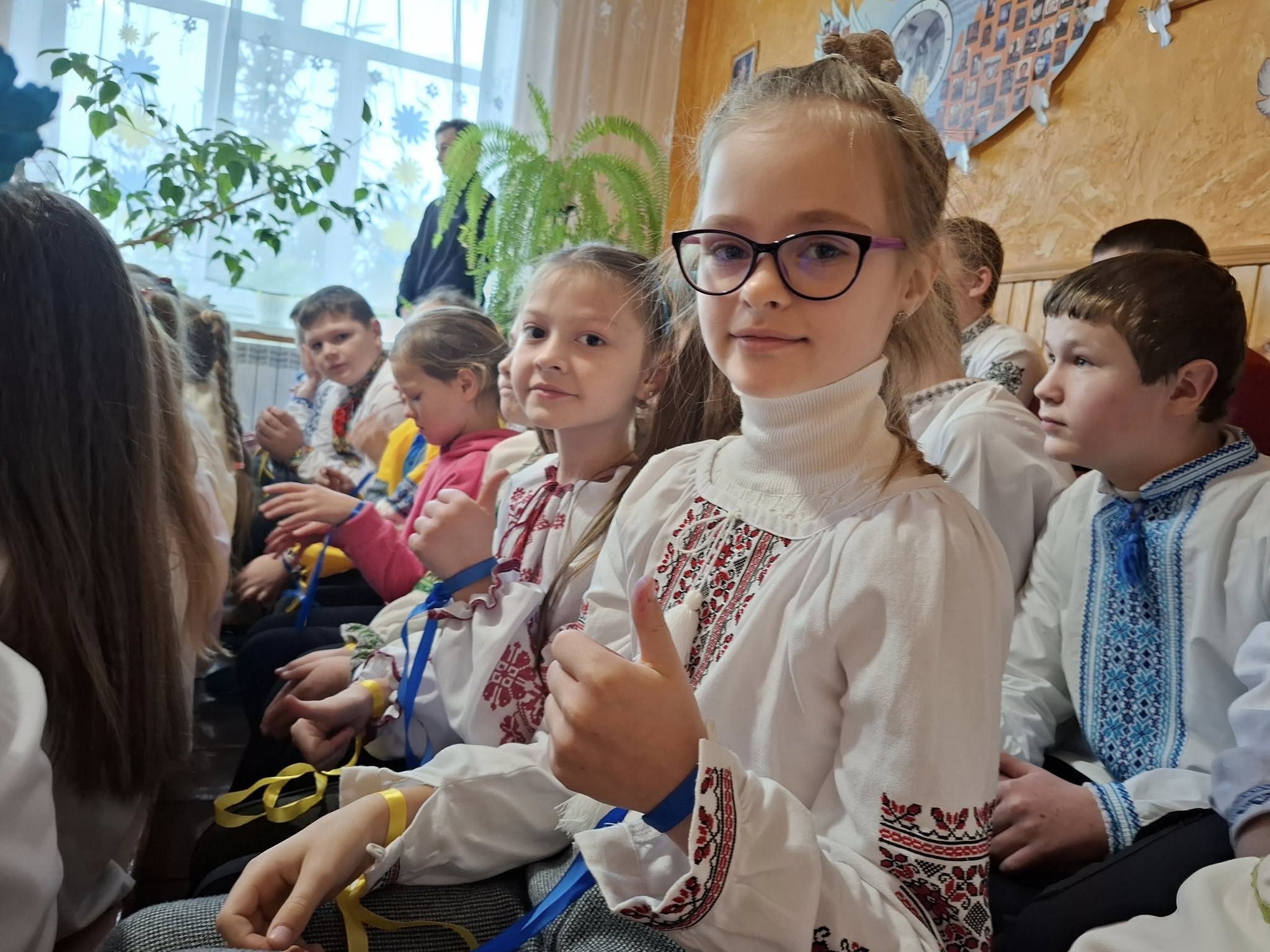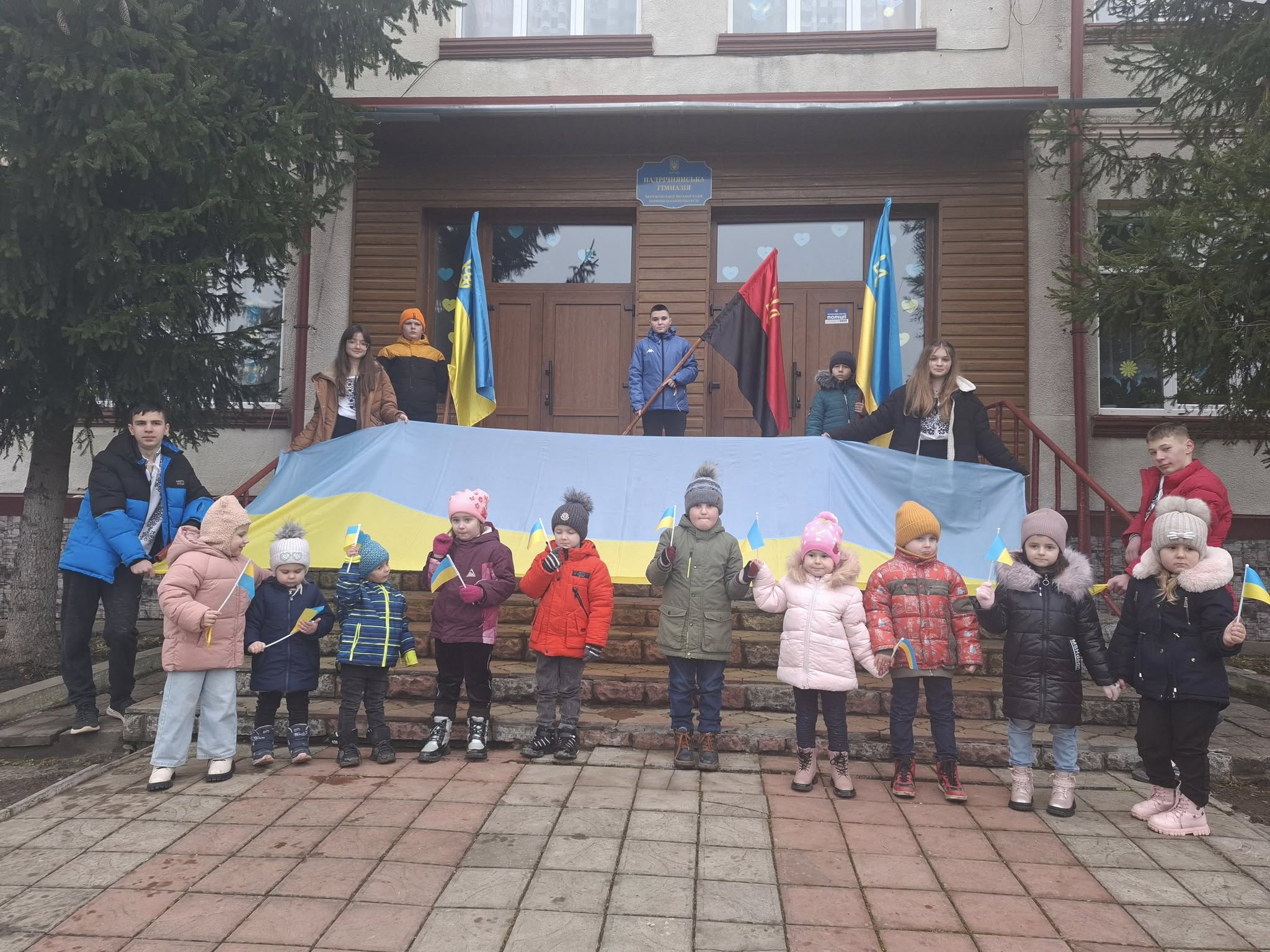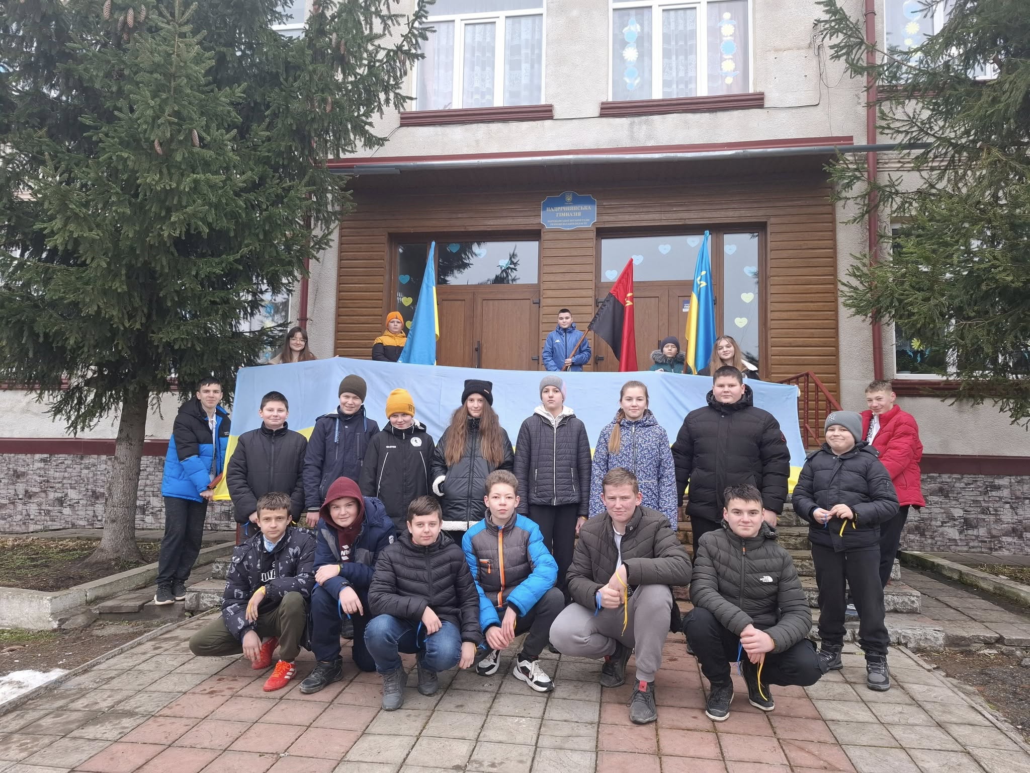 💙Сьогодні всі учні Надрічнянської гімназії та вихованці Дошкільного підрозділу створили символічний ланцюг єдності, взявшись за руки, щоб показати нашу силу, згуртованість та любов до рідної країни🤝🏻💛
