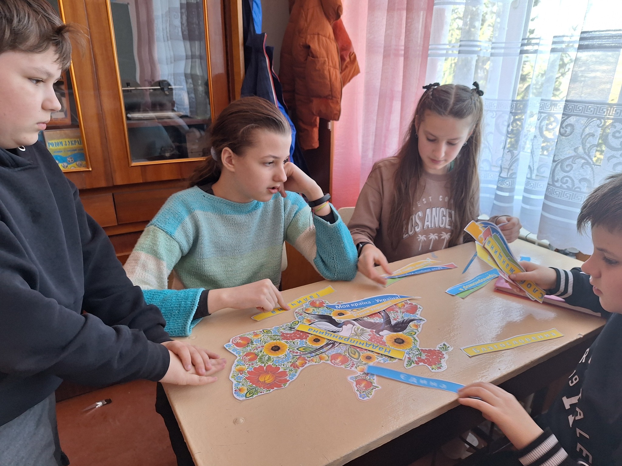 Окрім цього, діти виконували інтерактивні вправи, що допомогли закріпити матеріал у цікавій та нестандартній формі. А завершальним етапом стало складання пазлів, на яких зображена національна символіка – синьо-жовтий прапор, тризуб, калинові гілки.