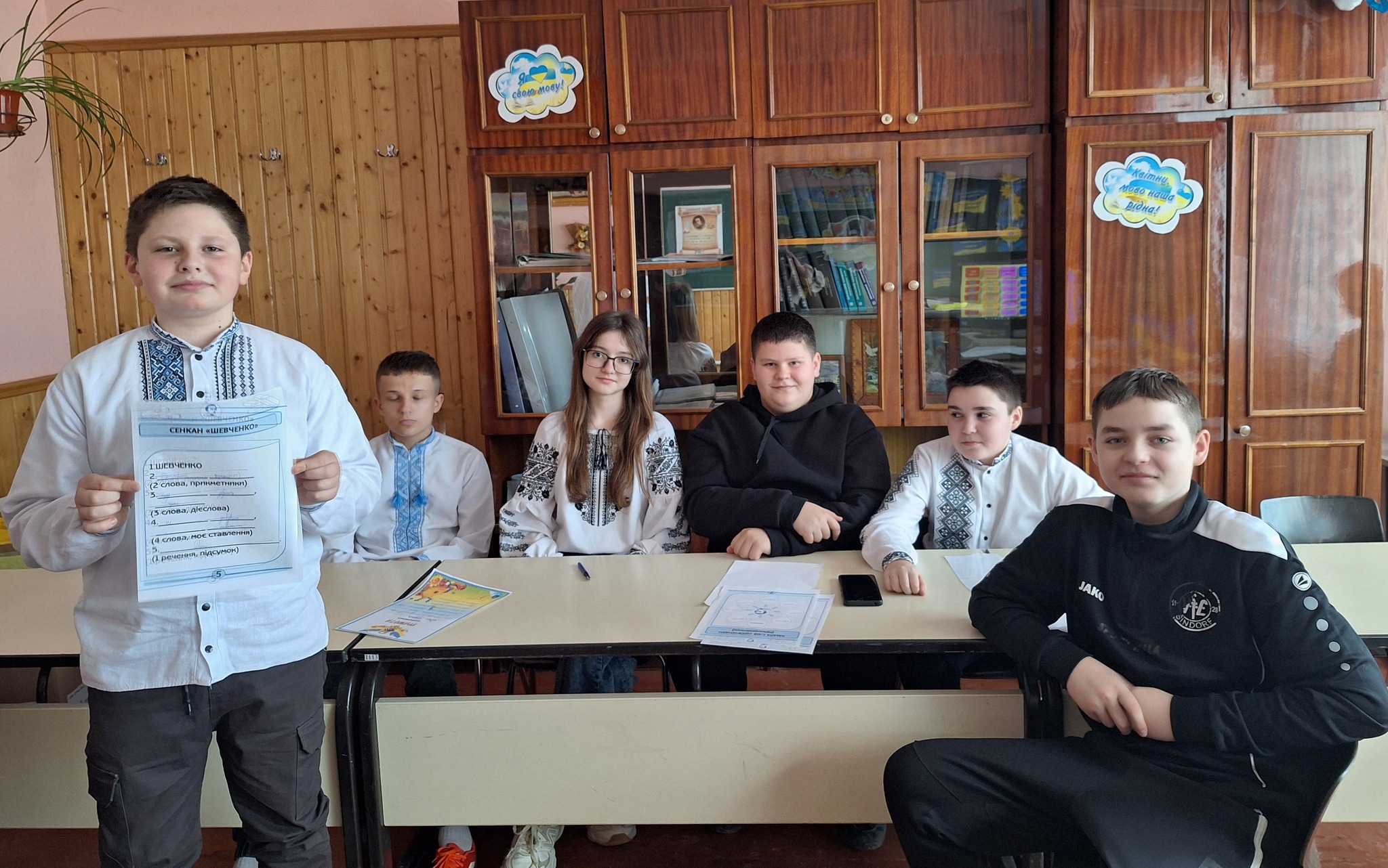 На інтегрованому уроці української мови та літератури учні 5-9 класів відкривали для себе багатогранний світ Тараса Шевченка. Дві команди — «Незламні» та «Патріоти» — змагалися у знаннях та креативності, демонструючи любов до рідного слова.